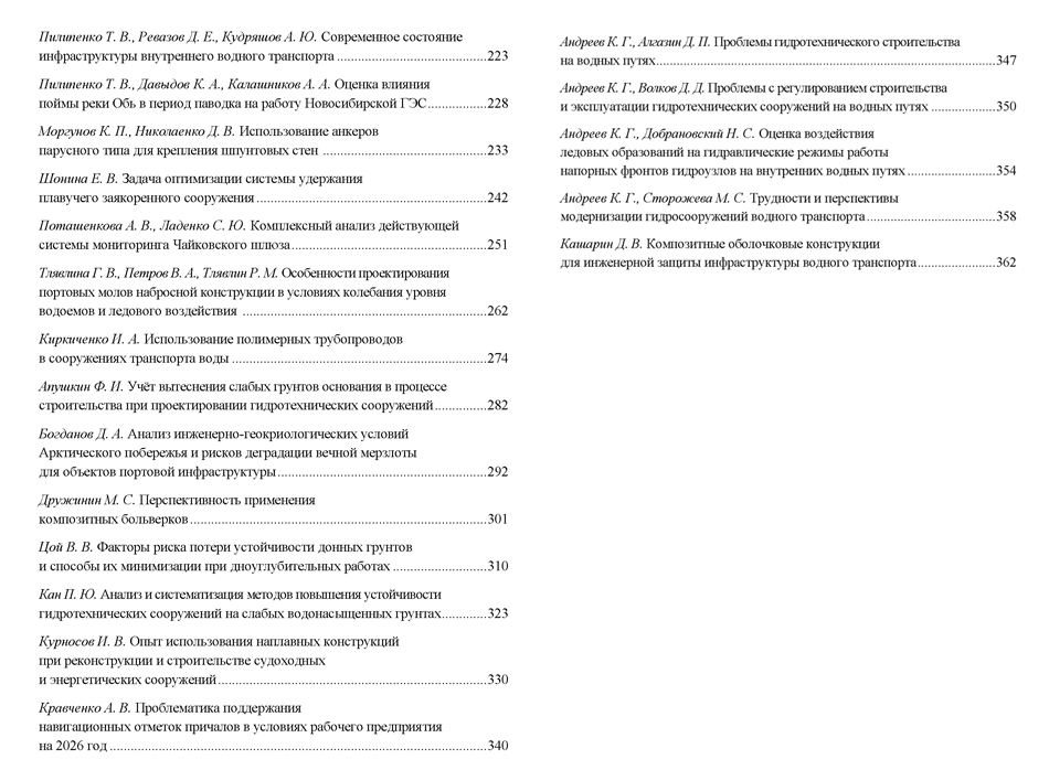 Ниже представлено содержание сборника «Развитие объектов инфраструктуры водного транспорта».